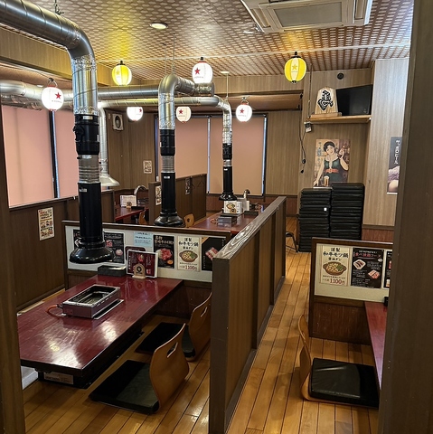 遠くからでも一目でわかる大きな看板と、温かい光が漏れるエントランス。創業から変わらぬ佇まいは、地元で愛され続ける「旨い肉」の証です。扉を開ける前から「今日は焼肉だ!」というワクワク感を演出。初めての方でもスッと入りやすい、包容力のある店構えとなっております!