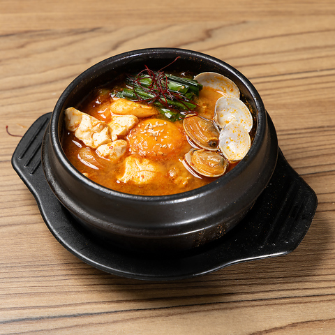 ぐつぐつと煮立つ赤いスープから立ち上る湯気が、食欲と温もりを同時に呼び起こすスンドゥブ。豆腐のやさしい口当たりと、深いコクを持つ辛味スープが絶妙に溶け合い、体の芯までじんわり染みわたる。寒い日にも疲れた日にも、ひと椀で心をほぐしてくれる、癒しの韓国定番メニュー。