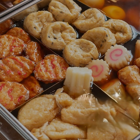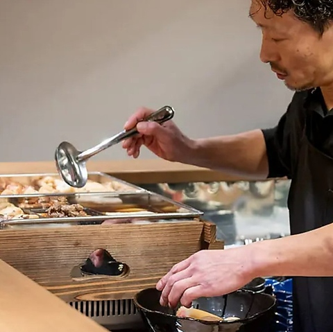 毎日引いた出汁で煮込む大根やちくわぶ等、全国各地の具材を取り揃えた当店自慢の創作おでんをご堪能下さい