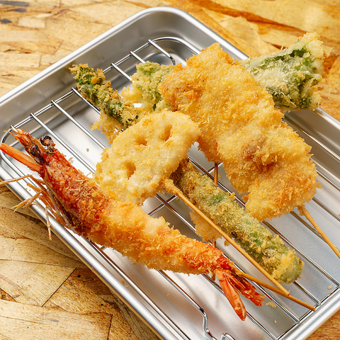 海鮮、野菜、肉と種類豊富に♪お客様の楽しいひとときを彩る串揚げをご用意!