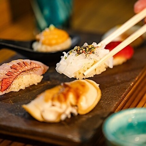 高級感あふれる和みの空間で寿司会席料理を味わう。職人の手仕事が加えられた寿司や季節料理をいただきながら、食材から四季を味わうことができます。そのためメニューは季節により変わる旬の食材を提供いたします。この瞬間だけしか味わえない旬の味をご堪能ください。