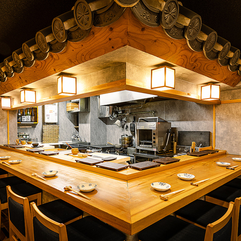 | カップルシート | 1名様×6 | 職人と客席の間に段差を設けず、フラットな目線から職人の手さばきが見られる仕様は自信と誇りの賜物。洗練された空間でごゆっくりお食事をお愉しみ下さい。 |