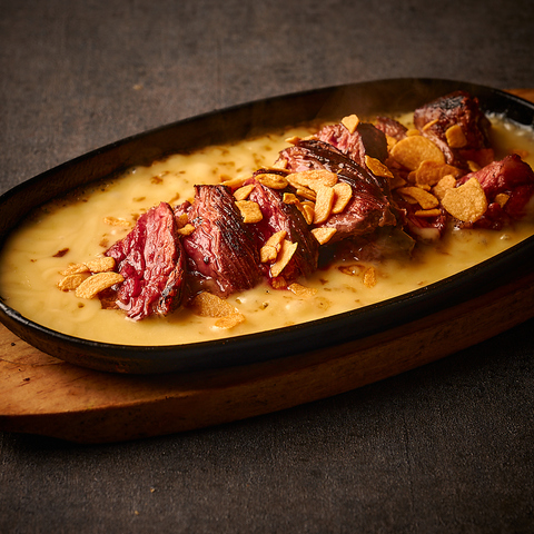 熱々鉄板餃子は当店の新メニュー!ジュ~ッと音を立てて運ばれてくる、アツアツの鉄板餃子!外はパリッと中はジューシー。ビールとの相性も抜群!!とっておきは、トロトロチーズのトッピング!!女性人気間違いなし!焼きたての旨みをぜひそのまま、熱いうちに是非お召し上がりください。