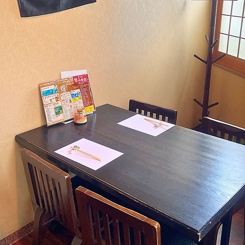 【4名様~6名様向けテーブル席】和モダンな雰囲気ある広々テーブル席です◎ご家族やご友人様と、和気あいあいとお食事を楽しめるテーブル席となっております。少人数様での飲み会や宴会にも最適なテーブル席です♪インテリアや照明にこだわった、落ち着いた雰囲気の心地よい空間でゆったりと過ごすひと時をお楽しみください