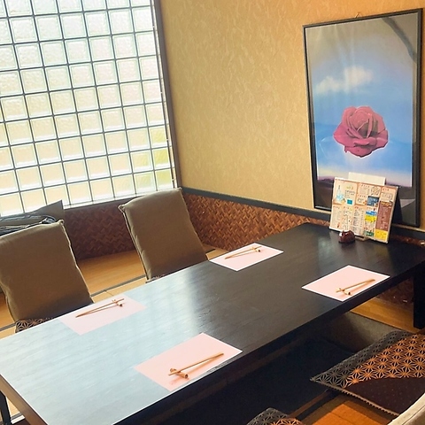【完全個室のプライベート空間】周囲を気にせず過ごせるプライベート個室をご用意!和の趣が静かに漂う落ち着いたしつらえで、会食や顔合わせ、少人数のお集まり、記念日などにも幅広くご利用いただけます♪ゆったりとした時間をお過ごしください。周りを気にせず会話を楽しめるためご家族やご友人との集まりにもおすすめ☆