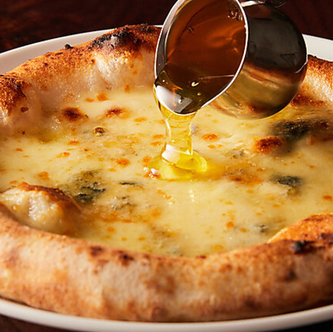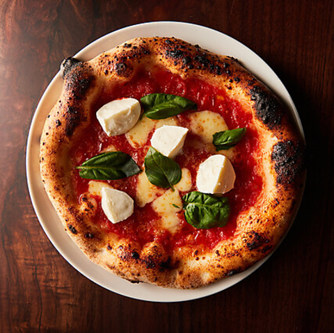 外はサクサク・中はもっちりの本格ナポリピッツァ生地には、最高級イタリア産の小麦粉全粒粉を使用。極限まで加水率を高めた生地を48時間発酵させ、400度まで熱したピザ専用窯で焼き上げます。