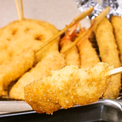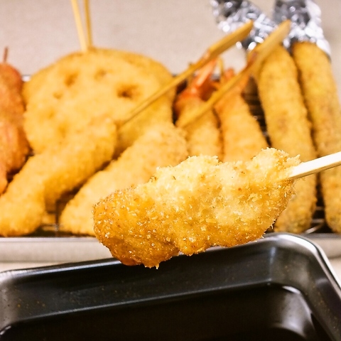 串カツの定番、牛串!サクッとした衣の食感とジューシーな牛肉の味わいは、間違いのない美味しさです。