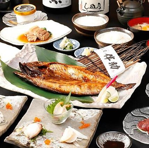 厳選食材が彩る♪全9品のコース。熟練の技で旨味を凝縮した干物は、日本各地の地酒とも相性抜群です。