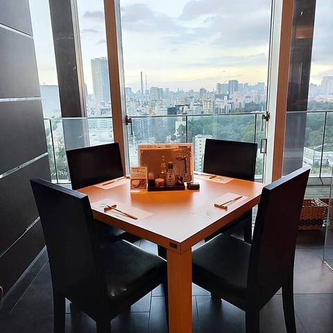 新宿のダイナミックな街並みを一望できる窓際のテーブル席です。ディナータイムには宝石のように煌めく夜景が目の前に広がり、お食事の時間をより一層エレガントに演出します。デートや記念日など、特別な日のデートに最適な特等席です。