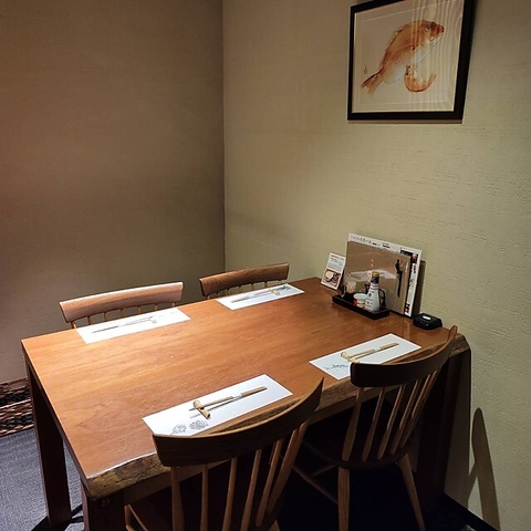 2名様からご利用いただける、落ち着きのある個室空間です。木の温もりを感じる和モダンな内装が、静かで穏やかな時間を演出。ご夫婦での会食や、ビジネスでの少人数での接待など、大切な方との対話を重視するシーンに最適です。