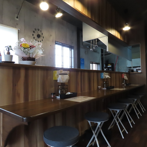 お一人様でも気軽に利用いただけるカウンター席をご用意。料理を目の前で仕上げる光景を楽しめるライブ感も魅力♪柔らかな照明と落ち着いた色合いで統一された店内は、居心地が良く会話も弾みます。気軽なお食事にも◎