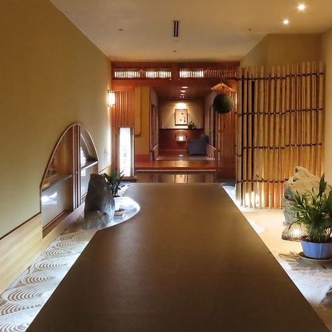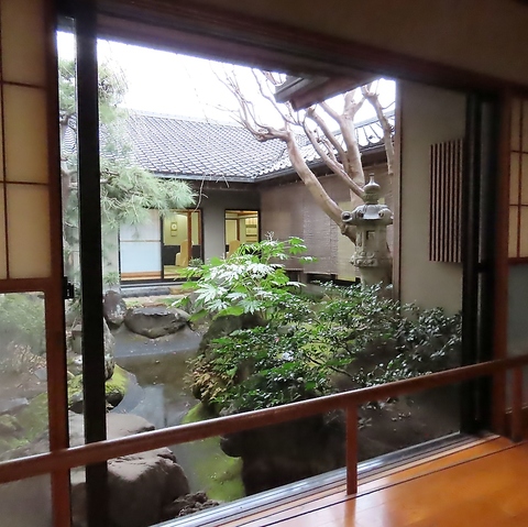 一歩足を踏み入れれば、そこには都会の喧騒を離れた情緒溢れる和の空間が広がっています。格式高い趣のある外観に対し、内装は温かみのある照明と木の質感が心地よい、洗練された設え。すべてのお部屋から美しい日本庭園が一望でき、四季折々の表情を見せる自然は、心を和ませてくれます。