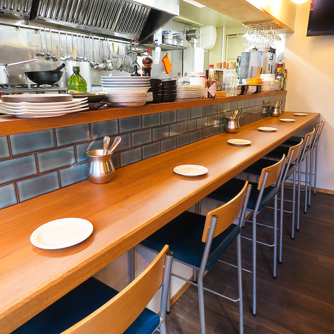 | カウンター | 1名様×6 | ライブ感溢れるカウンター席で、調理風景を楽しみながらお食事をお楽しみください。お仕事帰りのサク飲みや、お二人での語らいにも最適なお席です。 |