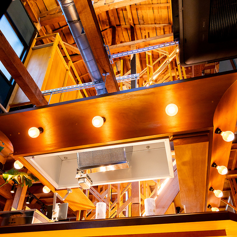 梁や柱を活かした、木材の質感が美しいきれいな内装が自慢です。天井が高く開放感あふれる空間には、遊び心のあるお洒落なインテリアが散りばめられており、どこを切り取っても絵になるフォトジェニックな雰囲気♪センスの光る空間で過ごす時間は、女子会や大切な記念日にも最適♪木の香りと柔らかな光に癒やされる、至福のひと時をぜひ◎