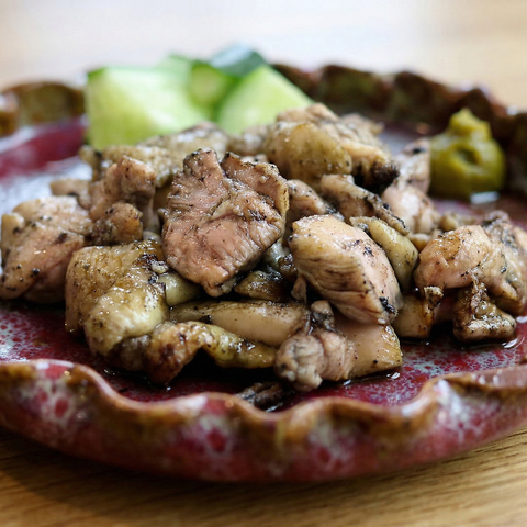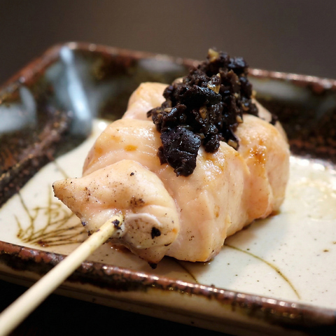 炭火の煙を纏い、真っ黒に輝くその姿こそが「本物」の証。ひと口噛めば、地頭鶏ならではの力強い弾力とともに、濃厚な肉汁がジュワッと口いっぱいに溢れ出します。炭の香ばしい香りと、噛むほどに増す鶏本来の甘み。焼きたてのアツアツを、ぜひ柚子胡椒とともに。