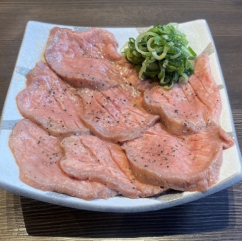 【極上】厚切り牛タン焼き。香ばしさとジューシーさが魅力。低温調理で旨み凝縮♪薬味との相性抜群。