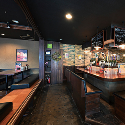 ウッド調の壁と温かな照明が、落ち着いた雰囲気を演出します。お一人様でも気兼ねなく過ごせるカウンター席から、グループで賑やかに楽しめるテーブル席まで完備。日常の喧騒を忘れて、心ゆくまで寛げる空間です♪