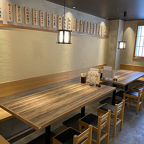 ゆったりとした配置のテーブル席は、友人同士の飲み会や女子会に最適です。清潔感のある広々としたお席で、彩り豊かなお寿司と豊富な一品料理をゆっくりとご堪能いただけます。落ち着いた照明と和のインテリアが心地よく、肩肘張らずにリラックスして過ごせる空間です。6名程度のグループまで対応可能なお席です。