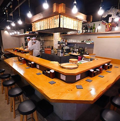 当店は温もりあふれる和モダンなデザインで統一されています。明るすぎず落ち着いた照明が、上質な大人の雰囲気を演出。お洒落な内装はデートや女子会にも好評で、日常を少し忘れて贅沢な気分に浸ることができます。カウンター席から見える職人の立ち振る舞いや、清潔感のあるテーブル席など、どこに座っても居心地の良さを感じていただけます。