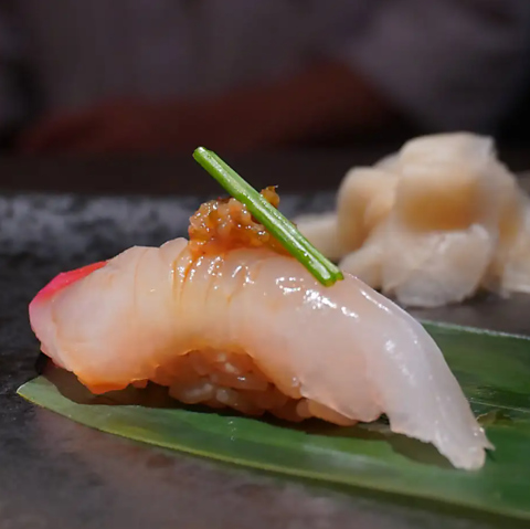 酒粕から作られた赤酢は白酢よりも香り高く、味わいもまろやかに。本格的な江戸前寿司を一貫からご提供