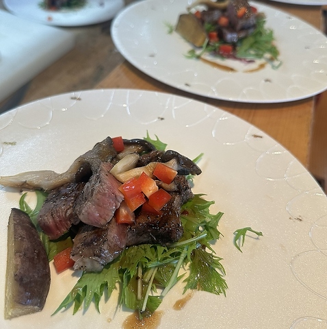 上質な黒毛和牛ロースを陶板で豪快に焼き上げます。熱々の陶板から立ち上る香ばしい匂いが食欲をそそり、噛みしめるたびに溢れ出す肉汁に感動。シンプルに素材の味を引き立てた調理法で、和牛ならではの繊細な風味を堪能できます。特別な日や自分へのご褒美に最適な一品です。