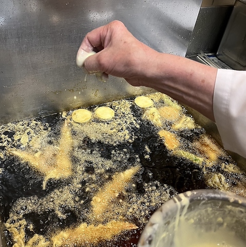 厳選した旬の素材を、熟練の技でカラリと揚げ上げました。薄く軽やかな衣が素材本来の旨みと水分を閉じ込め、噛むたびに豊かな香りが広がります。海老のプリッとした食感や、地野菜の力強い甘みをご堪能ください。お酒の肴としてはもちろん、御膳のメインとしても老若男女問わず愛される、当店の人気メニューです。