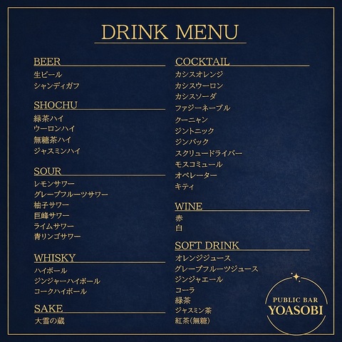 PUBLIC BAR YOASOBI ドリンク 2026/03/02 更新