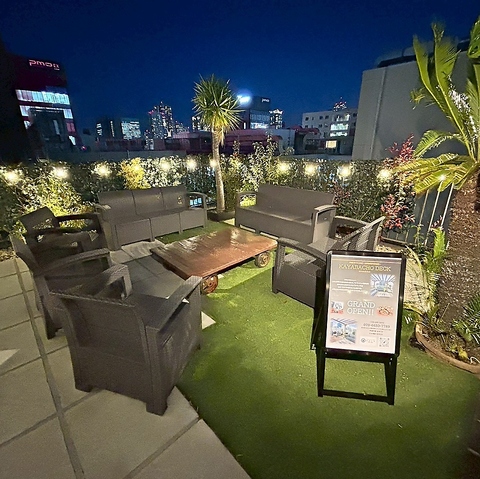昼夜各1組限定のプライベート空間は、立食時最大25名様まで収容可能です。広々とした屋外テラスを独占できます。ご予約や詳細はお気軽にお電話でご相談ください。