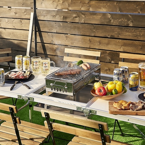厳選肉や季節の野菜を堪能できるコースをご用意。機材や食材の準備は不要で、本格BBQを気軽に楽しめます。