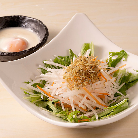 じゃこと大根の温玉シーザーサラダ
