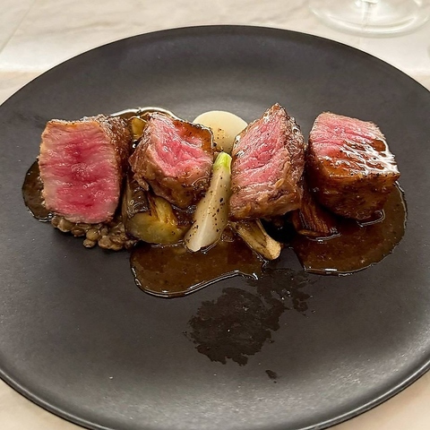 トモサンカクを焼き上げトリュフを使った赤ワインソースで