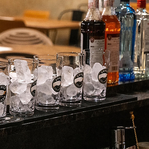 目の前の棚には世界中から厳選されたボトルが美しく並び、その圧倒的なラインナップはまさに圧巻の一言です。バックバーに反射する柔らかな光が、会話をよりいっそう弾ませる特別な演出に。肩を並べて美酒に酔いしれる、至福のひとときをお過ごしください。