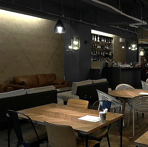 都会的で洗練された空気感の中にも、どこか陽気で温かみを感じる空間!瑞々しい観葉植物が空間を彩り、思わず長居したくなる「ふわふわ」の大型ソファーが皆さまをお迎えします。4名様でゆったりと囲めるテーブル席は、親しい友人との食事や女子会にぴったり!とっておきの隠れ家です。
