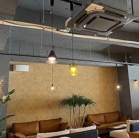 扉を開けると、ゲストの笑い声が響く陽気な空間が広がります。洗練されたお洒落な内装に、鮮やかな観葉植物とゆったりとした大型ソファーが配され、つい長居したくなる心地よさ。都会の日常を彩る、開放感あふれる大人の遊び場です。