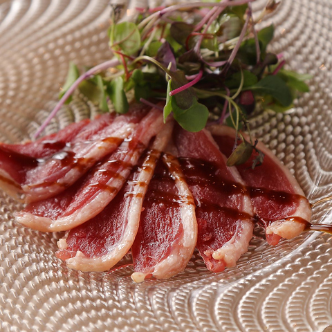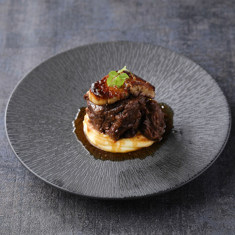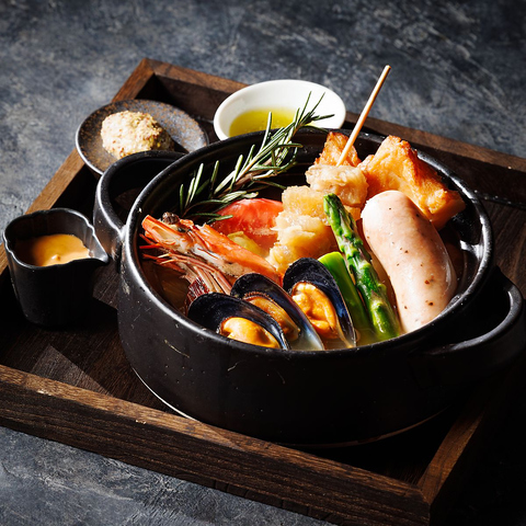 和の出汁にフレンチの技法を重ねた看板料理。定番素材も、ブイヨンやハーブの香りで奥行きある味わいに。ひと皿でさまざまな味を楽しめる贅沢な盛り合わせです。ワインと合わせて楽しむ、新感覚の屋台フレンチをどうぞ。