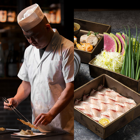 香りが立ち上がる瞬間を逃さず。三強それぞれの知恵を絞った黄金出汁が、厳選食材の味をさらに高めます。