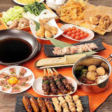 各種ご宴会にオススメの2時間飲み放題付き全9品の大満足コース!とり鉄特製の「出汁焼き鳥」の他、食べたらやみつき、お酒が進むこと間違いなしのおつまみをバランス良く取り揃えました。