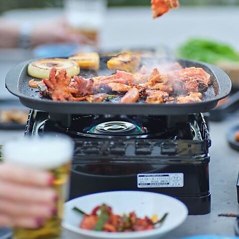 開放的な屋外で心地よい風を感じつつ、本場韓国のBBQを満喫できます!屋根完備で雨天でも安心◎厚切りサムギョプサルやタッカルビ、プルコギなどのメインに加え、海鮮チヂミやチュクミといった多彩な韓国タパスも全て食べ放題!ご友人と至福のひとときを心ゆくまでどうぞ♪