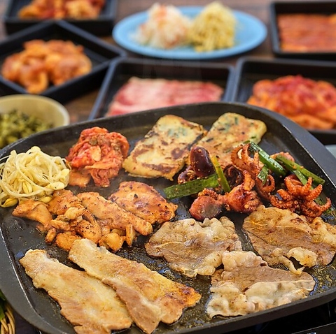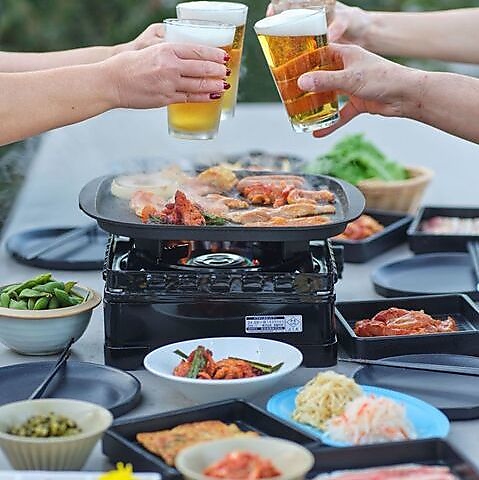 開放的な屋外で心地よい風を感じつつ、本場韓国のBBQを満喫できます!屋根完備で雨天でも安心◎厚切りサムギョプサルやタッカルビ、プルコギなどのメインに加え、海鮮チヂミやチュクミといった多彩な韓国タパスも全て食べ放題!ご友人と至福のひとときを心ゆくまでどうぞ♪