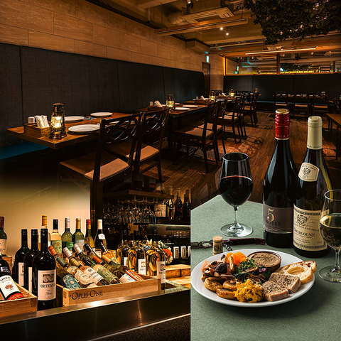 酒屋が目利きした季節替わりのボトルワインを豊富に取り揃えたワインコーナー。赤・白、その日の料理や気分に合わせて自由にお選びいただけます。ビストロ料理とともに、飲み比べを楽しめるのも魅力です。