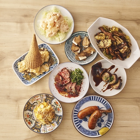 上富良野生まれのソラチビールや北海道産ぶどうを使用した「はこだてわいん」をはじめ、森町限定「森政宗(日本酒)」やヨーグルト酒、ラッキーガラナサワー、とうきび茶ハイなど、北国ならではの一杯を豊富にご用意しております。さらに、ハイボールやウイスキー・クラフトジンまで幅広く取り揃え、料理とともにお楽しみいただけます。