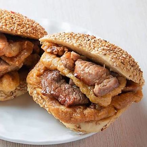 「カリッ、モチッ、じゅわっ。五感を刺激する究極のバーガー!」香ばしい白ごまをたっぷりまぶした伝統の「光餅(コンピャン)」は、外はカリッと、中は噛むほどに旨味が増すモチモチ食感。そこに、トロトロに煮込まれたジューシーなお肉を豪快にサンドしました。一口頬張れば、肉汁とごまの香りが口いっぱいに広がる幸福体験をぜひ!