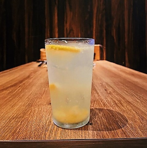 ジンと焼酎で漬け込んだ自家製のレモンサワー。甘さを抑えてビターな味わい。焼鳥にはレモンの酸が相性抜群です。