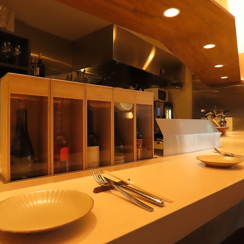お一人様から利用できるカウンター席は、オープンキッチンのライブ感を楽しめる特等席です♪2名~4名で利用できるテーブル席も完備し、親しい方とのプライベートなひとときにも最適◎温かみある照明が落ち着きを演出しており、カジュアルながらも特別感を感じさせる空間となっています!
