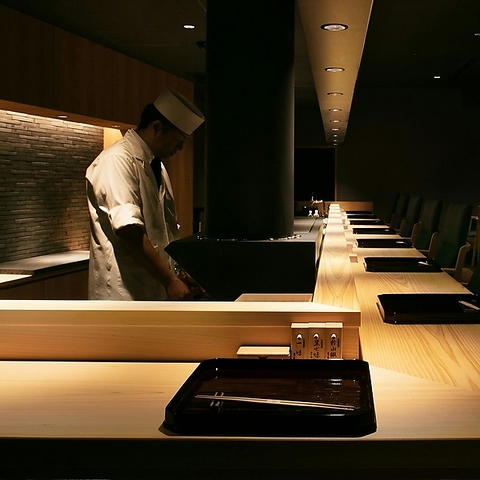 上質かつ高級感あふれる木目調のカウンター席。オープンキッチンのため、目の前で職人が手掛ける焼鳥のライブ感を愉しめる特等席です。こだわり抜いた銘柄鶏が備長炭で丁寧に焼き上がる香りと音を感じながら、大切な方と贅沢なひとときをお過ごしください。落ち着いた雰囲気の中で嗜むお酒は格別な味わいです。