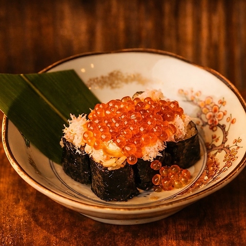 酒のために設計した“あて巻き”をご賞味ください。海鮮や薬味の組み合わせで余韻を楽しむ、大人のための寿司スタイルです。