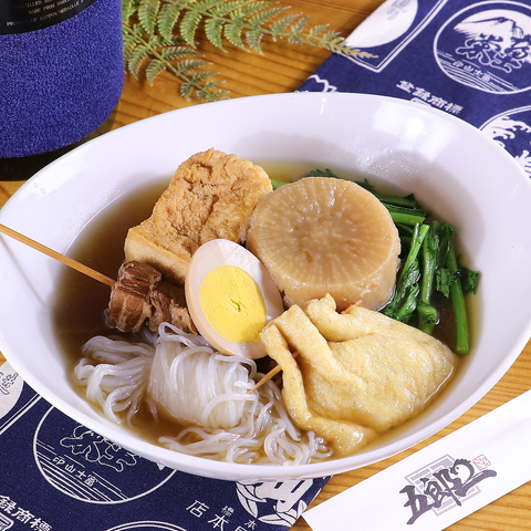 かつおと昆布を使用し、じっくり時間をかけて仕上げた特製の出汁が自慢です。添加物は一切使用しておらず、五郎一だからこそ味わえる美味しさをご堪能いただけます◎定番の大根をはじめ、出汁がしっかりと染み込んだ具材はどれも絶品♪優しい味わいのスープは最後の一滴まで飲み干したくなる、心温まる逸品です◎