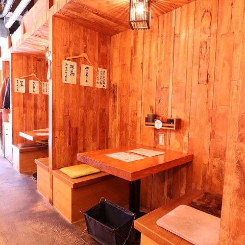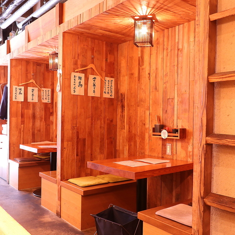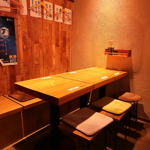 木の温もりを感じるテーブル席は、お仲間との飲み会やご宴会にぴったりです♪明るく活気あふれる店内で、美味しい焼鳥やおでんを囲みながら楽しいひとときをお過ごしいただけます。親しみやすいラフな雰囲気なので、気兼ねなく会話も弾みます。普段使いから、お集まりの席まで幅広くご利用ください◎