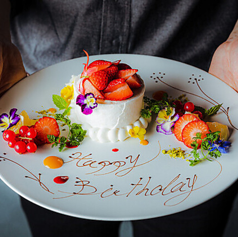 誕生日や記念日に嬉しいメッセージ付きデザートプレートをご用意。サプライズ演出も対応可能。