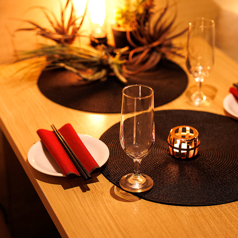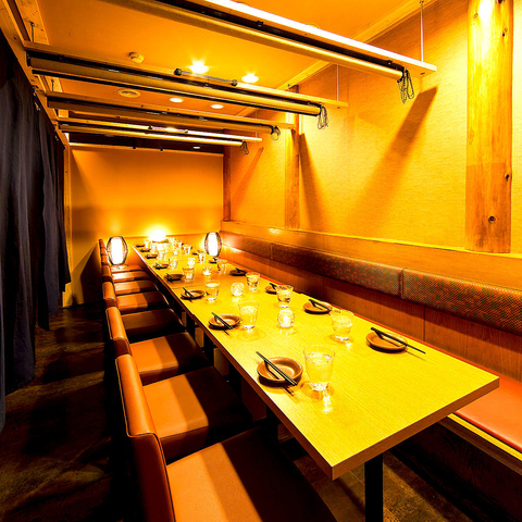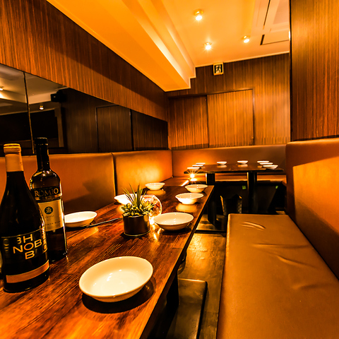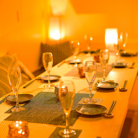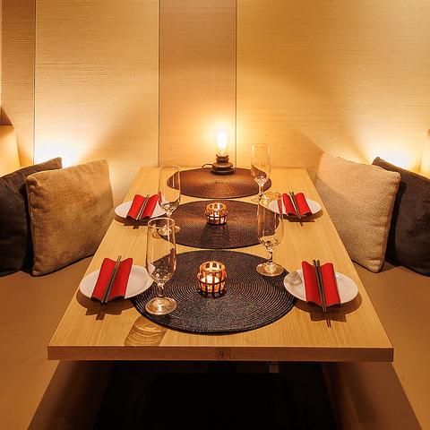落ち着いた雰囲気のモダンな個室席は、周囲を気にせずゆったりと過ごせるプライベート空間。接待はもちろん、大切な方のお祝いにも最適です。人数に応じた席のご用意が可能なので、お気軽にご相談ください。女子会や誕生日会など、特別な日にもぴったり。